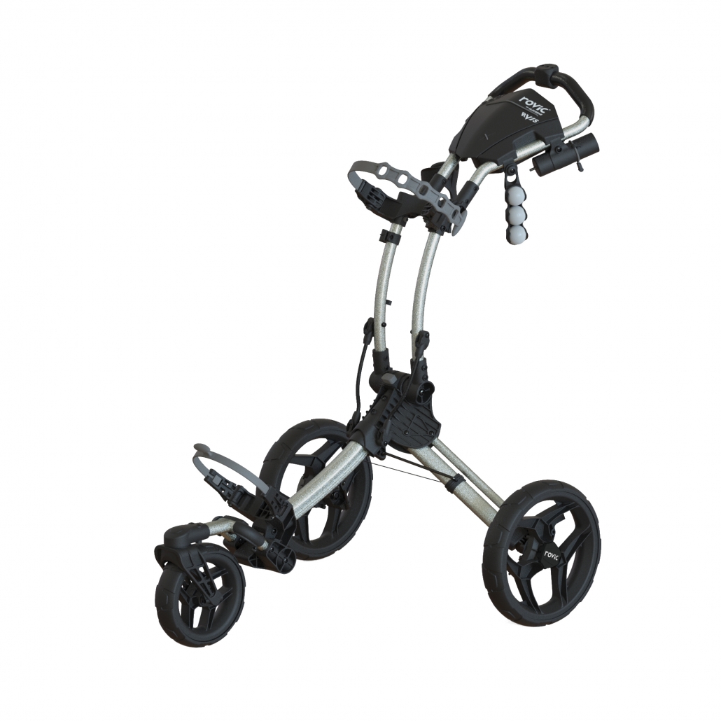 Rovic RV1S on kaikkein kompaktein ja monipuolisin kolmipyöräkärry. Helppo taittaa ja hieman kevyempi kuin muut kärryt. Kärryssä on suuret renkaat sekä kääntyvä etupyörä. Renkaiden leveä akseliväli tekee siitä entistä helpomman liikutella golfkentällä. Vie vähän tilaa ja se voidaan helposti varastoida useimmissa laukkukaapeissa. Taittuu alas helposti. Tehokas käsijarru.